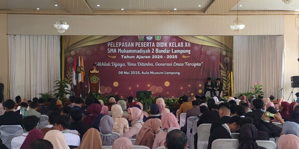 SMA Muhammadiyah 2 (SMAMDA) Bandar Lampung melaksanakan acara Pelepasan Peserta Didik Kelas XII Tahun Ajaran 2024-2025 dengan tema “Akhlak Dijaga, Ilmu Ditimba, Generasi Emas Tercipta” yang bertepatan pada hari Kamis, (08/05/2025) dan berlokasi di Aula Museum Lampung.